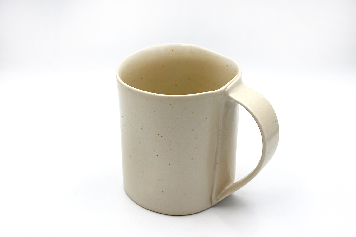 These mugs were made in small batches, each sculpted with the utmost care and attention. Its form and curved handle fit your hand ergonomically. The rims are tapered to feel soft on your lips and guide the flow of your drink. Sculpted so that they are asymmetric, the mugs are comfortable for both right and left-handed use. Perfect for tea, coffee, milo or water for your all-day hydration.