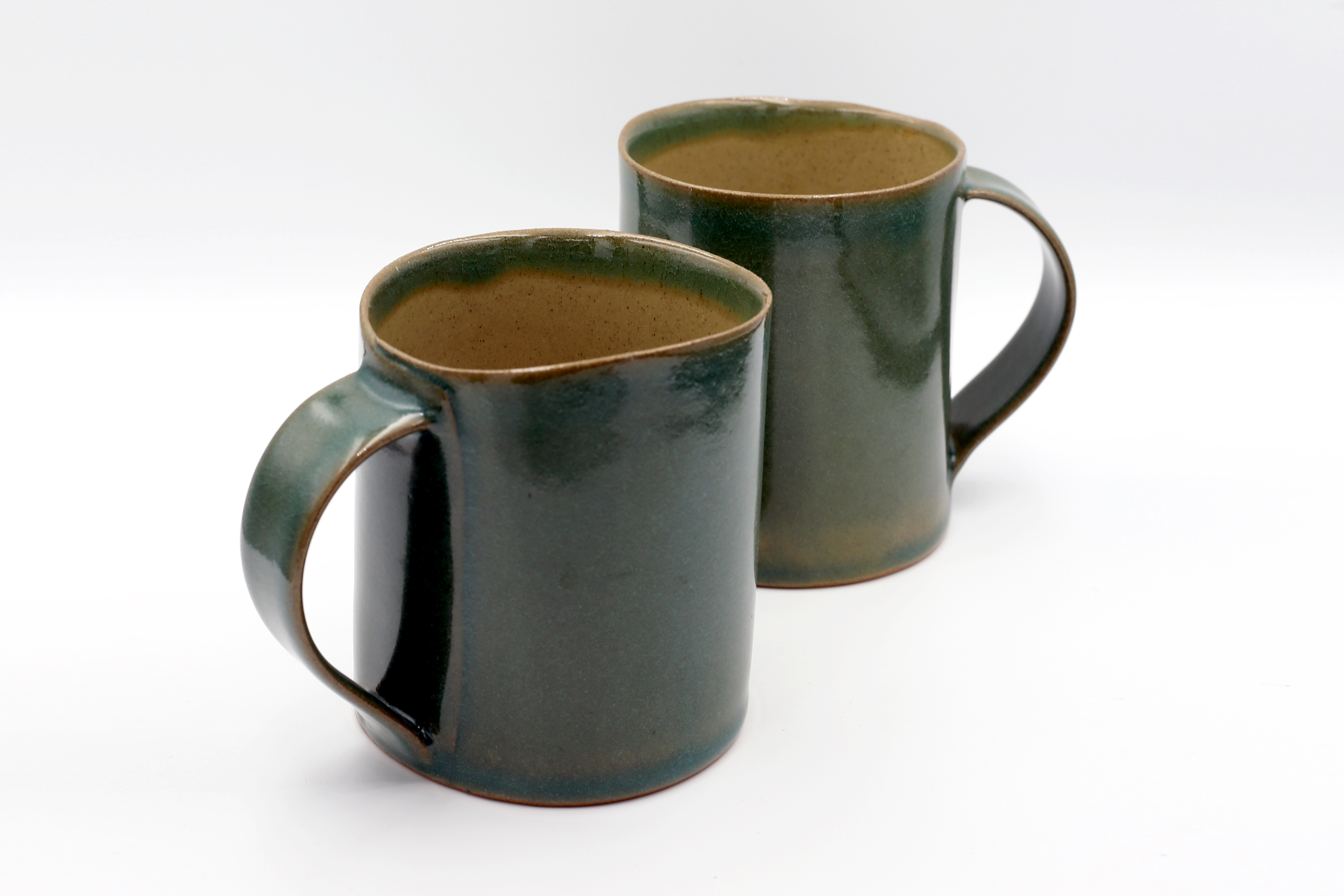 These mugs are sold in pairs. They are made in small batches, each sculpted with care and attention. The minimal classic shape is enhanced with the intensity of colour and beautiful glaze finishing. Its curved handle fits your hand ergonomically. The rims are tapered to feel soft on your lips and to guide the flow of your drink.
